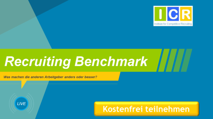 Auf dem Future of Recruiting Summit nutze ich in verschiedenen Vorträgen Benchmarkdaten. Diese beruhen auf demICR Recruiting Benchmark, zu dem auch Sie herzlich eingeladen sind.