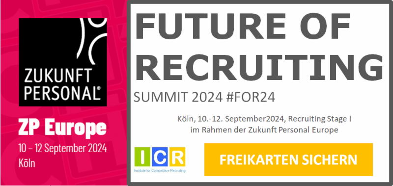 Dieses Jahr findet der Future of Recruiting Summit 2024 #FOR24 vom 10.-12.9.2024 wieder live auf der Zukunft Personal Europe 2024 statt. Hier können Sie sich wieder für die kostenfreien ICR Tickets (Wert 150 €, gelten auch für die ZP) anmelden.