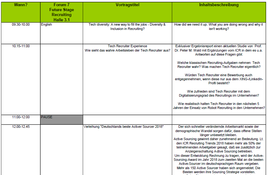 Alle Vorträge etc. finden hier statt: Halle 3.1, Forum 7, Future Stage Recruiting