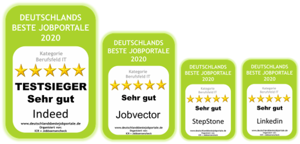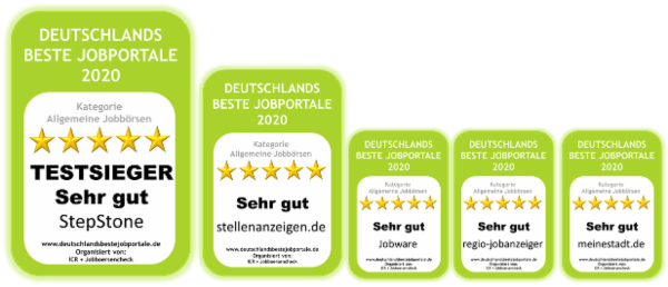 Die Gewinner 2019 (jeweils Platz 1-3) in den einzelnen Jobportal-Gattungen: