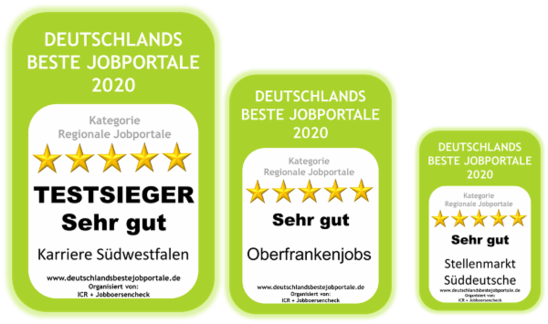 Mit einer starken Präsenz und Bekanntheit in der Region Südwestfalen und sehr hohen Zufriedenheitswerten führt Karriere Südwestfalen das Ranking der besten Regionalportale weiterhin an und sichert sich das 3. Mal in Folge die Testsieger-Auszeichnung. Den zweiten Platz kann sich 2022 erstmals MittelfrankenJOBS.de erkämpfen.