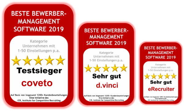 Das Institute for Competitive Recruiting (ICR), Heidelberg hat für diesen Qualitätscheck, den ersten Vergleich seiner Art in Deutschland, in den letzten Jahren jeweils über 10.000 Personaler befragt. Antworten über die Nutzung und die Erfahrungen mit den genutzten Bewerbermanagementsystemen haben zwischen 300-900 Unternehmen angegeben.