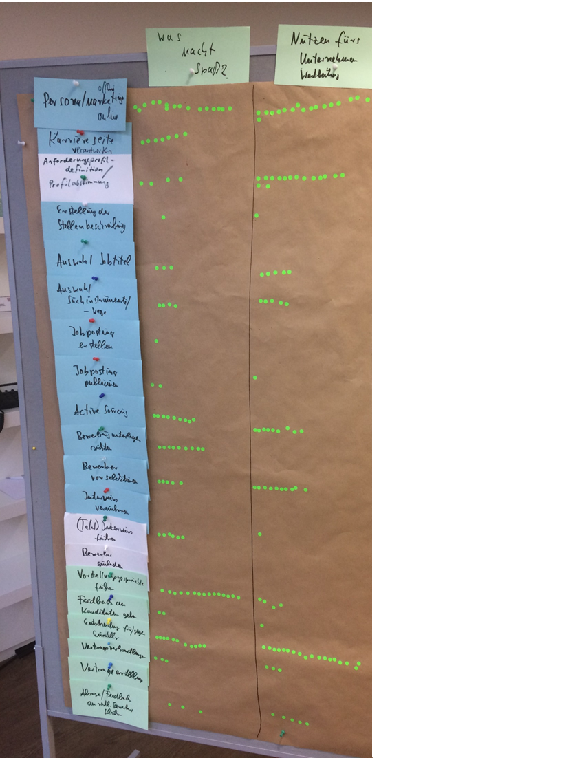 Erste Schritte im Rahmen dieses Projektes sind schon getanHierzu haben wir auf dem HR Barcamp 2018 in Berlin schon einmal angefangen und uns in einer Session mit ca. 30 Recruitern diesen Fragen gewidmet: Welche Tätigkeiten machen eigentlich Spaß?![]()