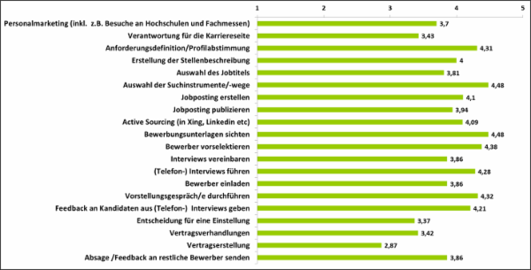 Quelle: Quo Vadis Recruitment Erhebung 2017, 602 Beantwortungen von Recruiter aus allen Tätigkeitsfeldern, Skala der Ausprägungen: 1= "trifft gar nicht zu" bis 5= "Trifft voll und ganz zu" Die Grafik zeigt schon mal eindeutig, das der Job eines Recruiters nicht gleich ist. Für fast alle gehören die Anforderungsdefinition, die Auswahl der Suchwege, die Sichtung von Bewerbungsunterlagen, die Vorselektion der Bewerber, das Führen von (Telefon-) Interview, das Führen von Vorstellungsgesprächen sowie die Kommunikation des Feedback an die Kandidaten aus den (Telefon-) Interviews auf jeden Fall dazu. Beim Personalmarketing oder der Erstellung und Erhaltung der Karriereseite oder der Vertragserstellung sind längst nicht alle eingebunden. Auch in den anderen Tätifkeitsfeldern gibt es einige Unterschiede. Was wird ein Digital Recruiter in Zukunft tun?Hierzu stellen sich einige Fragen, die im Rahmen eines größeren ICR Projektes abgearbeitet werden sollen: