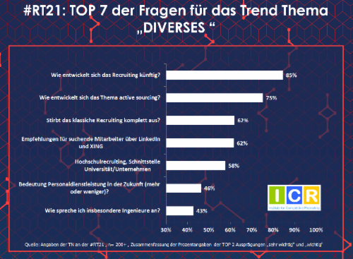 So haben die angemeldeten Teilnehmer über die Wichtigkeit der eingereichten Fragen zu diesem Trend Thema abgestimmt: ![]() Recruiting Trend Thema " DIVERSITY RECRUITING":