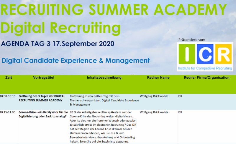 Agenda Tag 3 der ICR Digital Recruiting Summer Academy